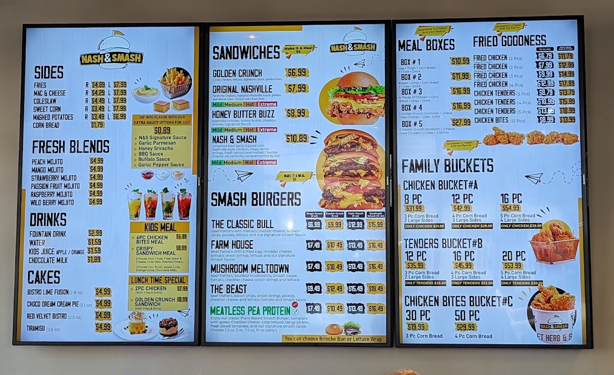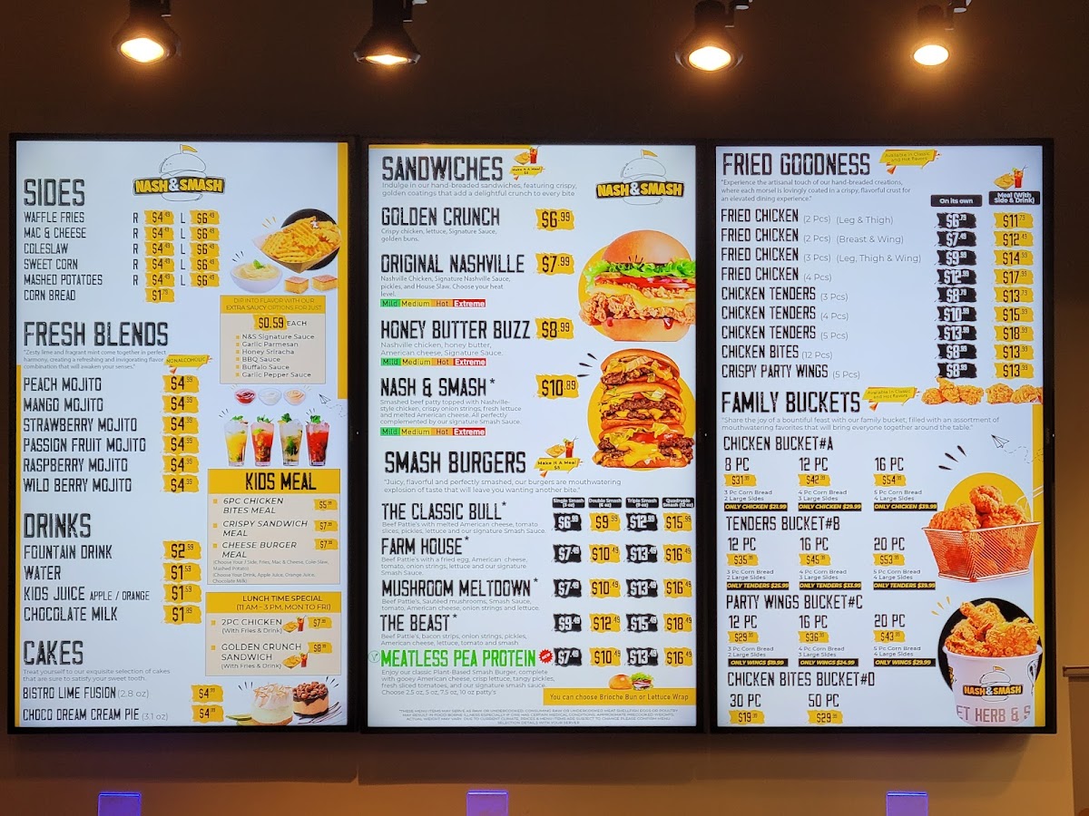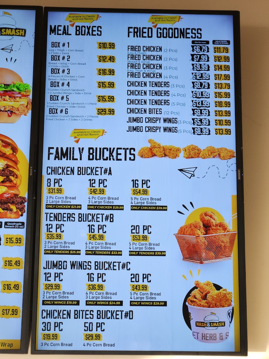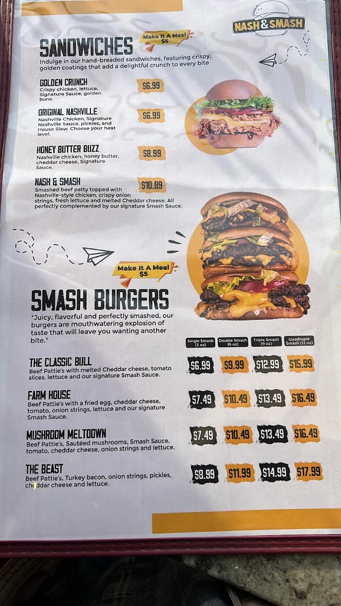 Smashed beef patty topped with nashville style chicken, crisy onion strings, fresh lettuce and melted cheddar cheese. All perfectly complemented by our signature smash sauce.